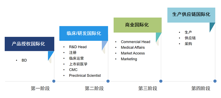 当企业迈入临床和注册阶段,R&D head,以及分析当地市场的注册总、临床运营总、上市前医学总、CMC等方面的人才被迫切需要。